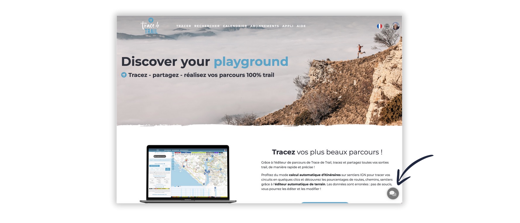 À noter : la bulle de chat n'est pas disponible sur les pages de création de trace ou de modification de trace. Ouvrez une autre page en parallèle pour poser vos questions si vous avez besoin d'assistance lors de la création / modification d'un tracé.