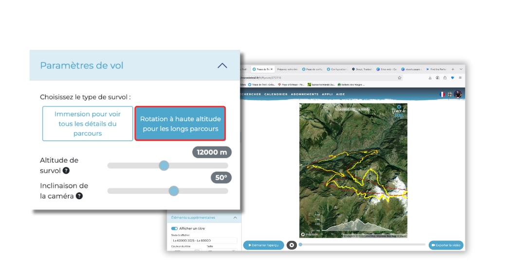 La fonctionnalité flyover permet de créer une vidéo de survol en 3D de votre parcours. De nombreux outils sont disponibles pour vous permettre de personnaliser cette vidéo, nous vous les présentons en détails sur cette page.